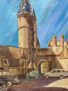 Voitures anciennes, huile sur toile, vers 1950
