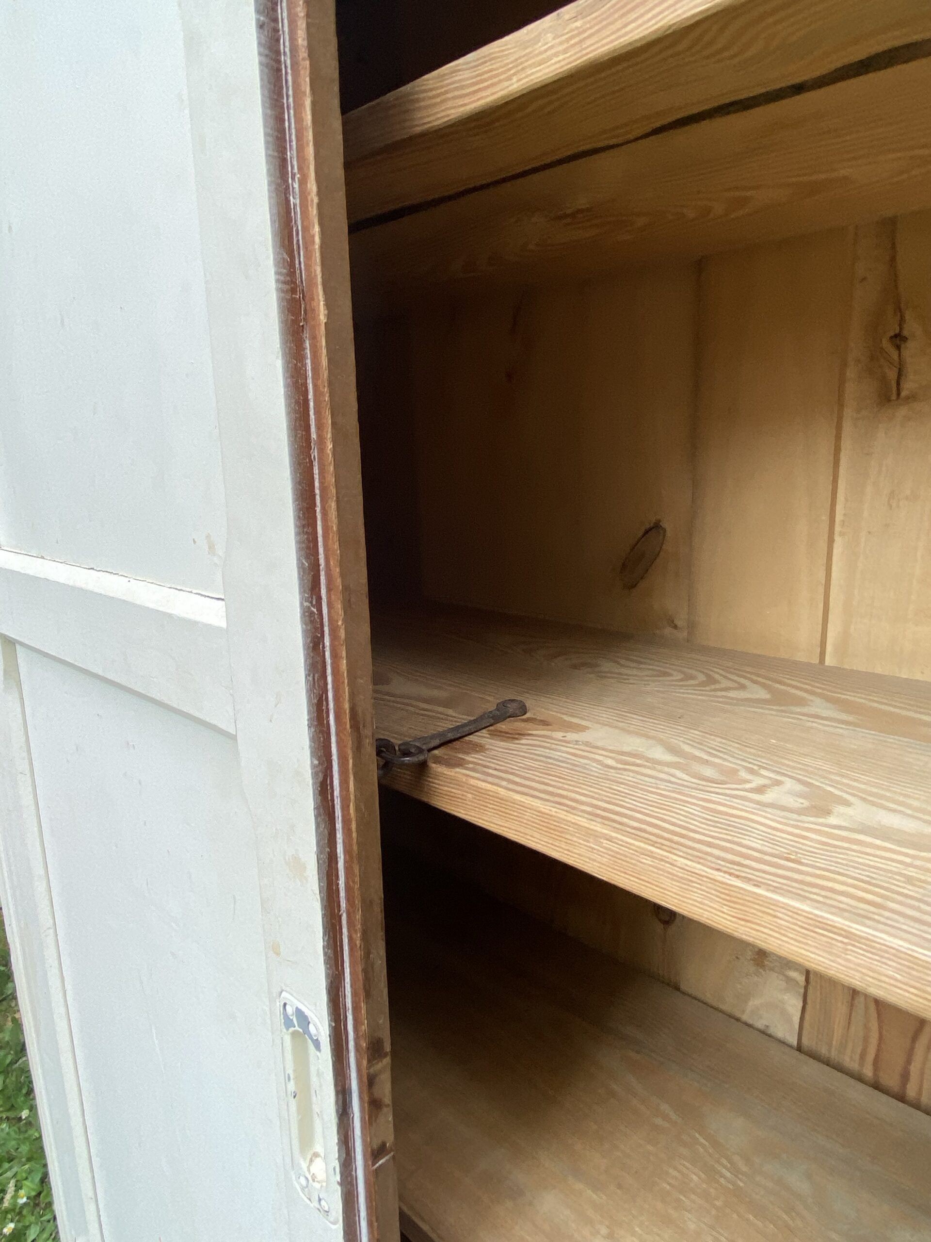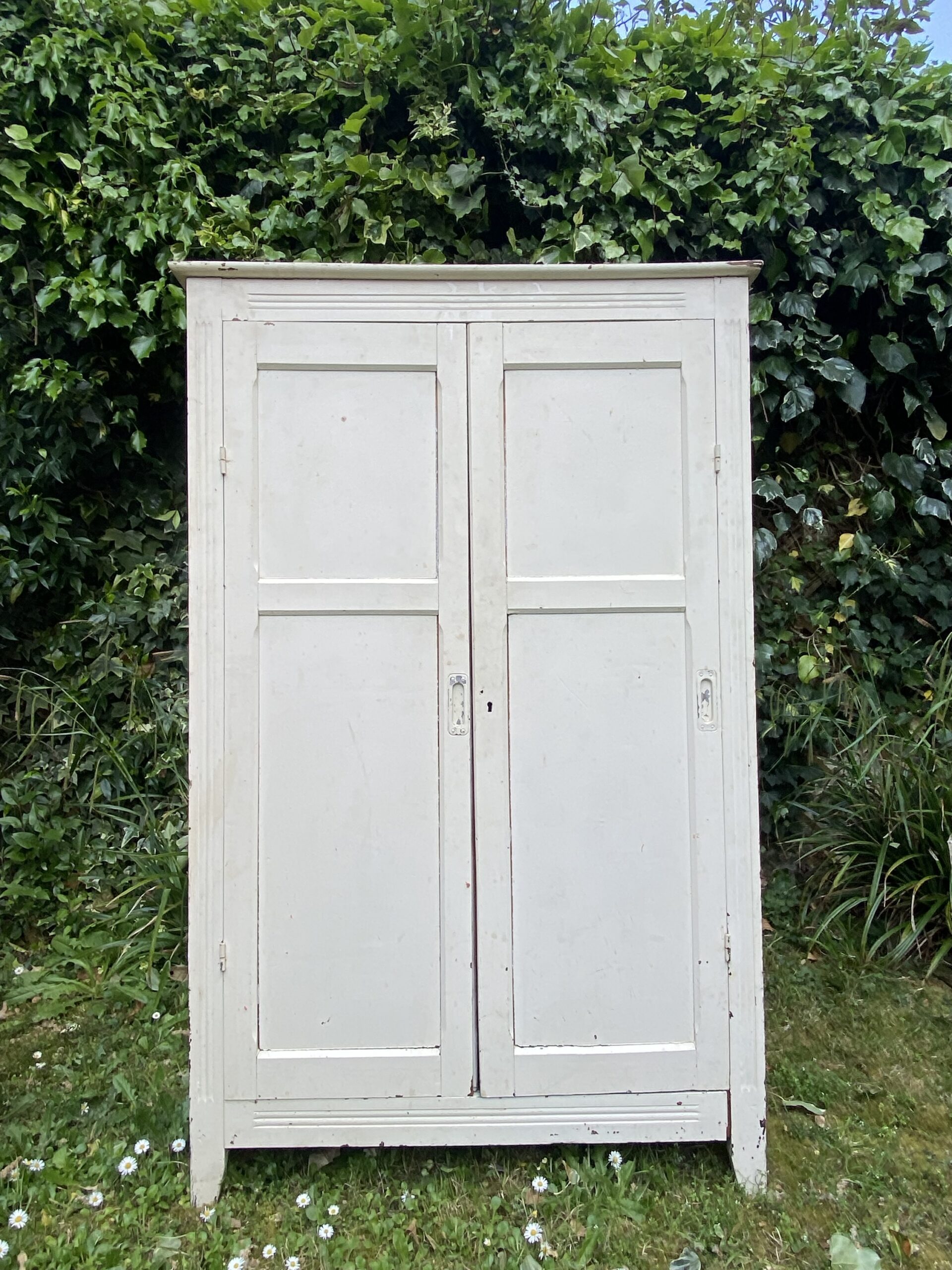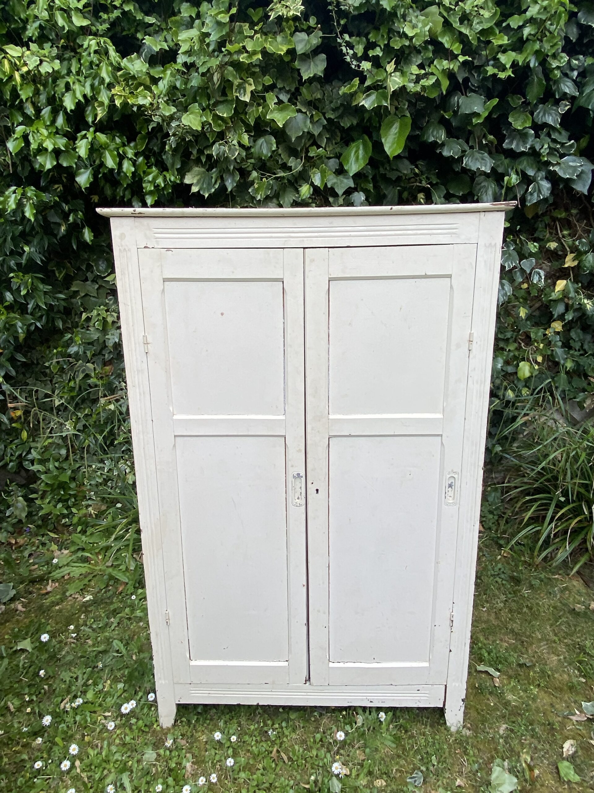 Petite armoire parisienne dans sa atone blanche d’origine. Deux portes. Plusieurs étagères à l’intérieur.
