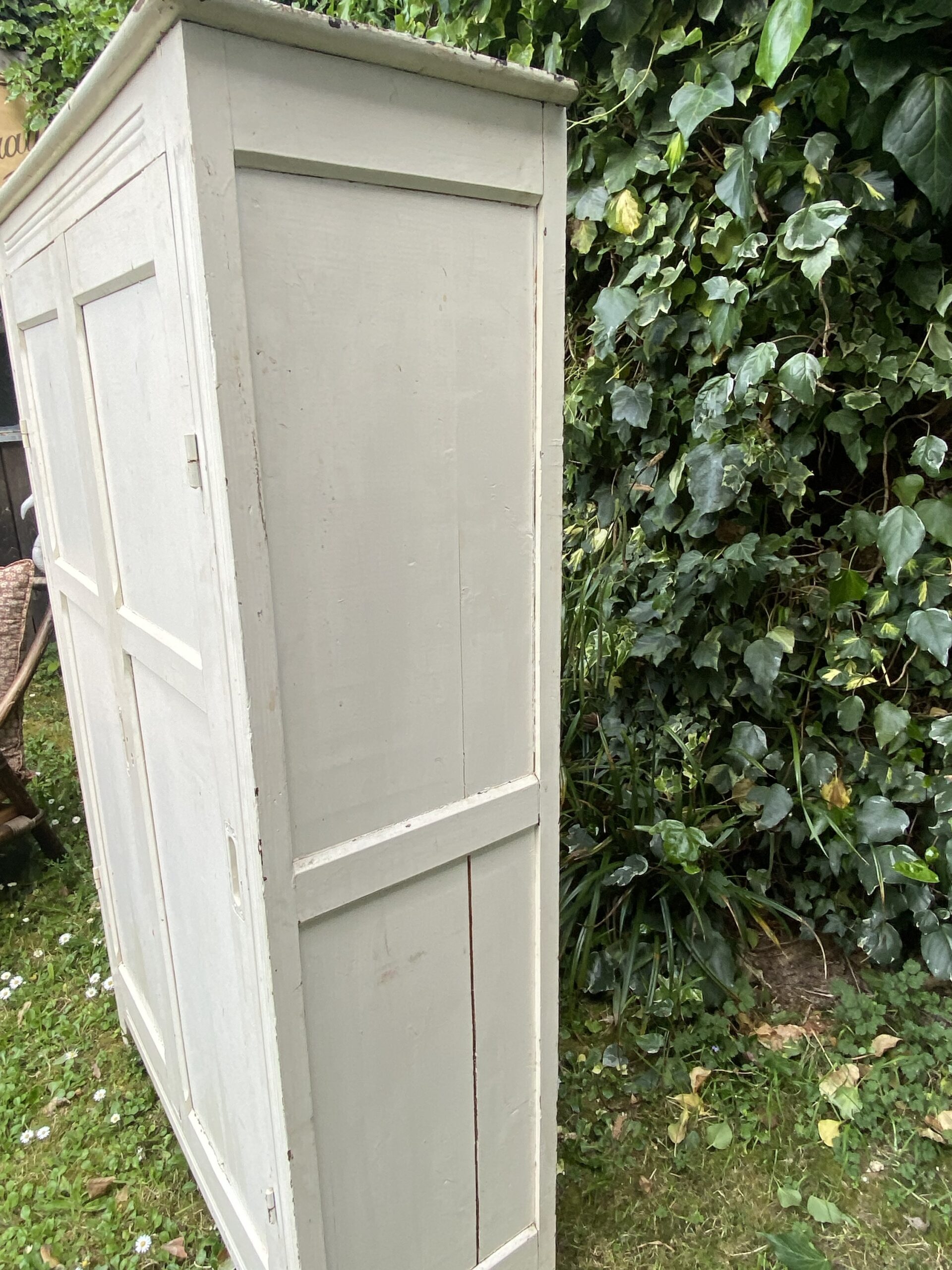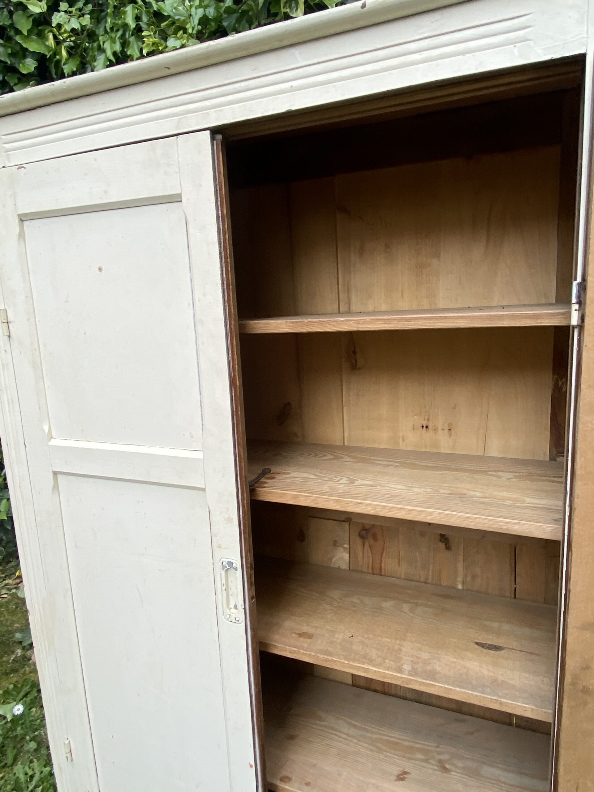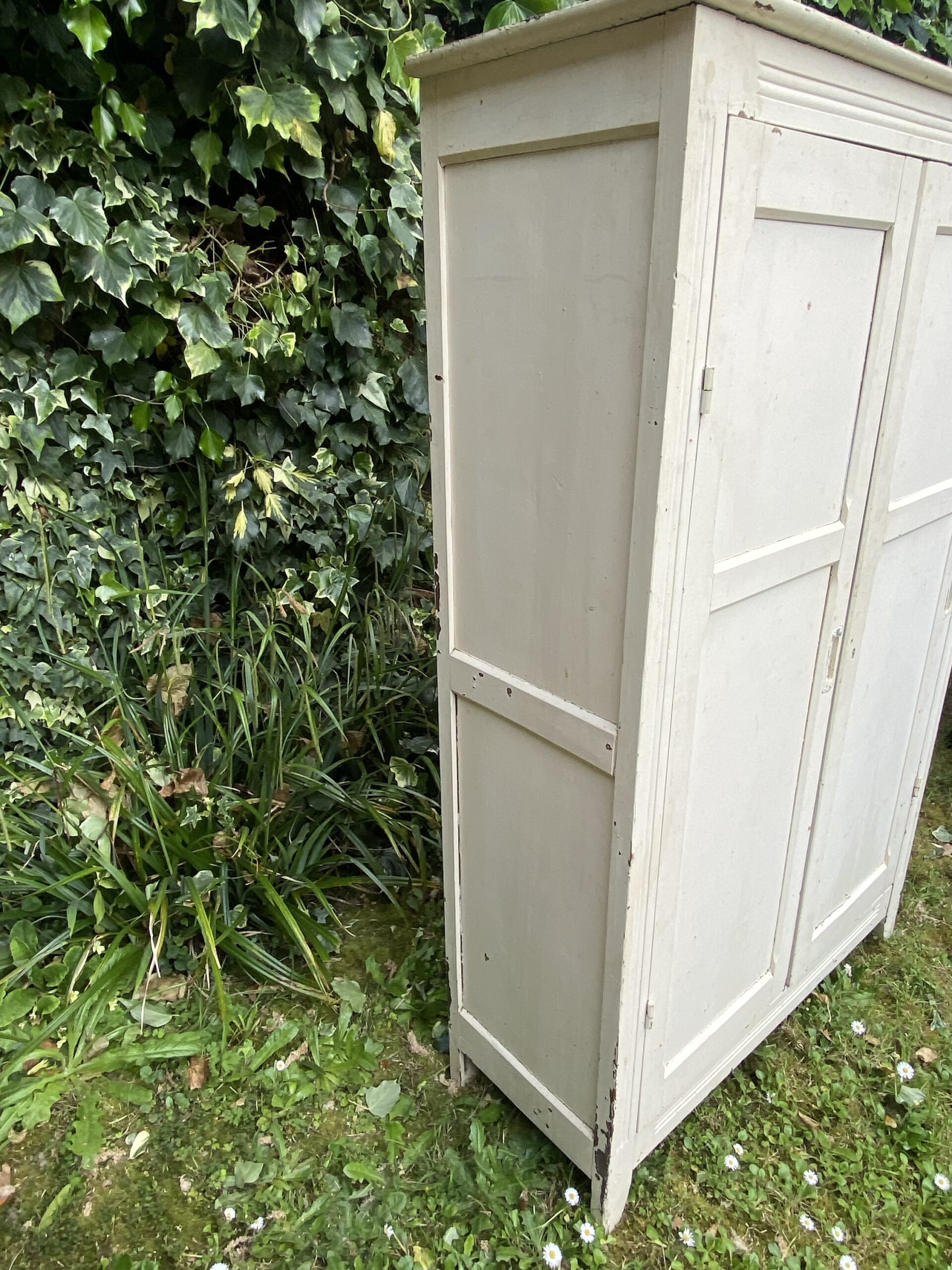 Petite armoire parisienne dans sa atone blanche d’origine. Deux portes. Plusieurs étagères à l’intérieur.