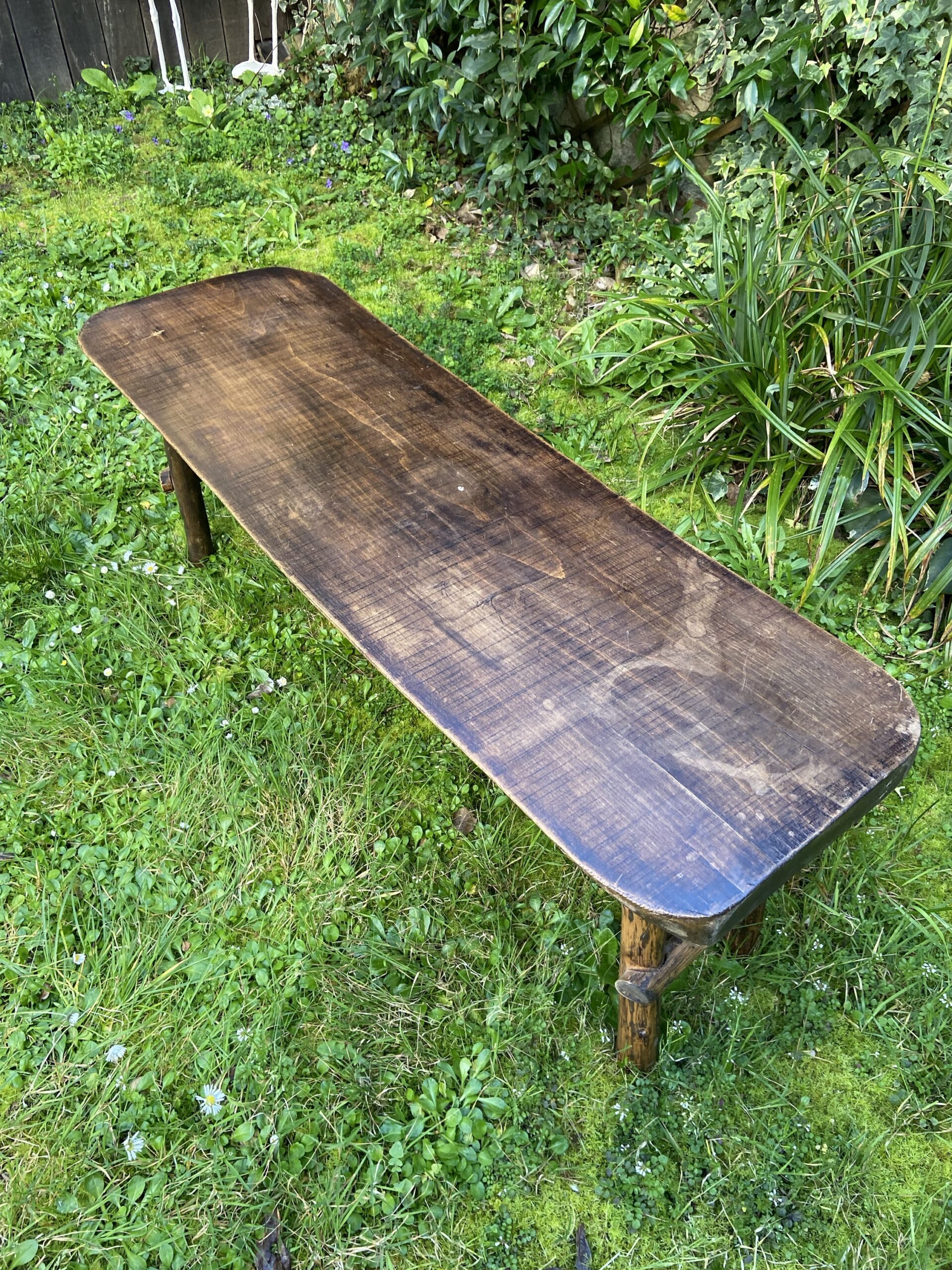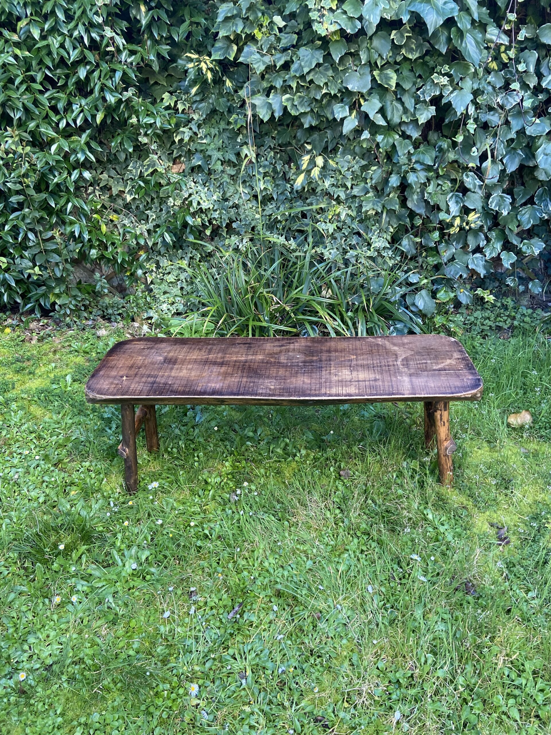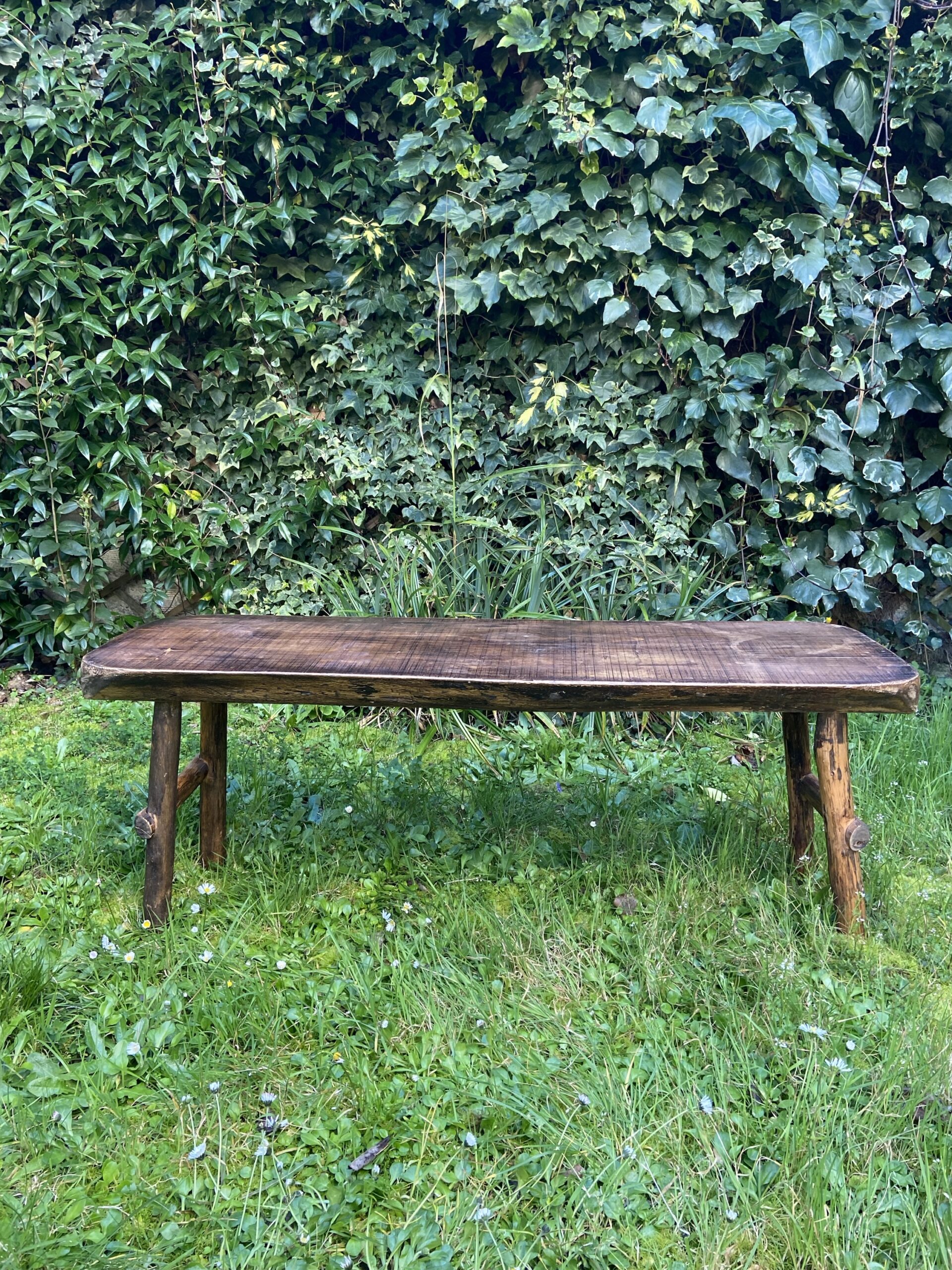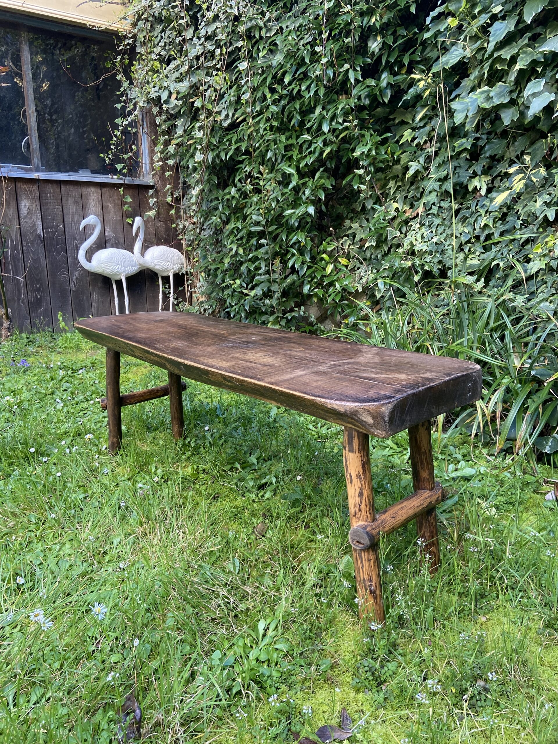 Très beau banc brutaliste des années 60-70. En bois massif.
