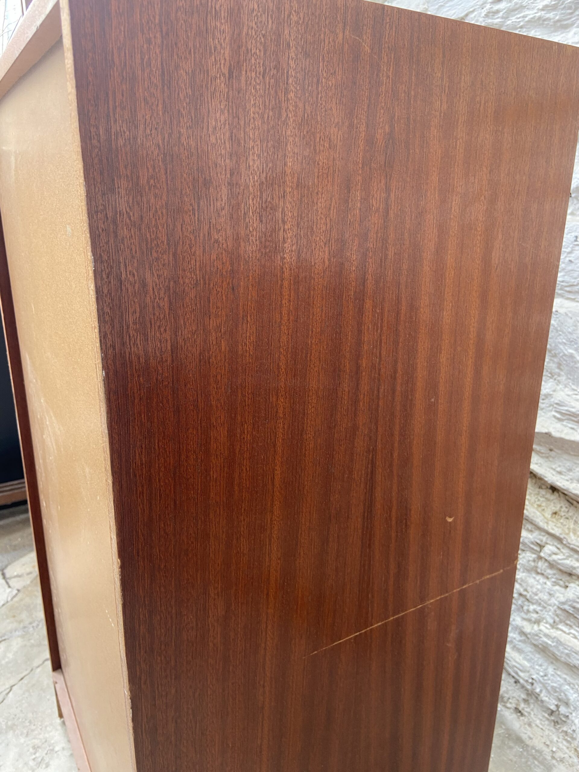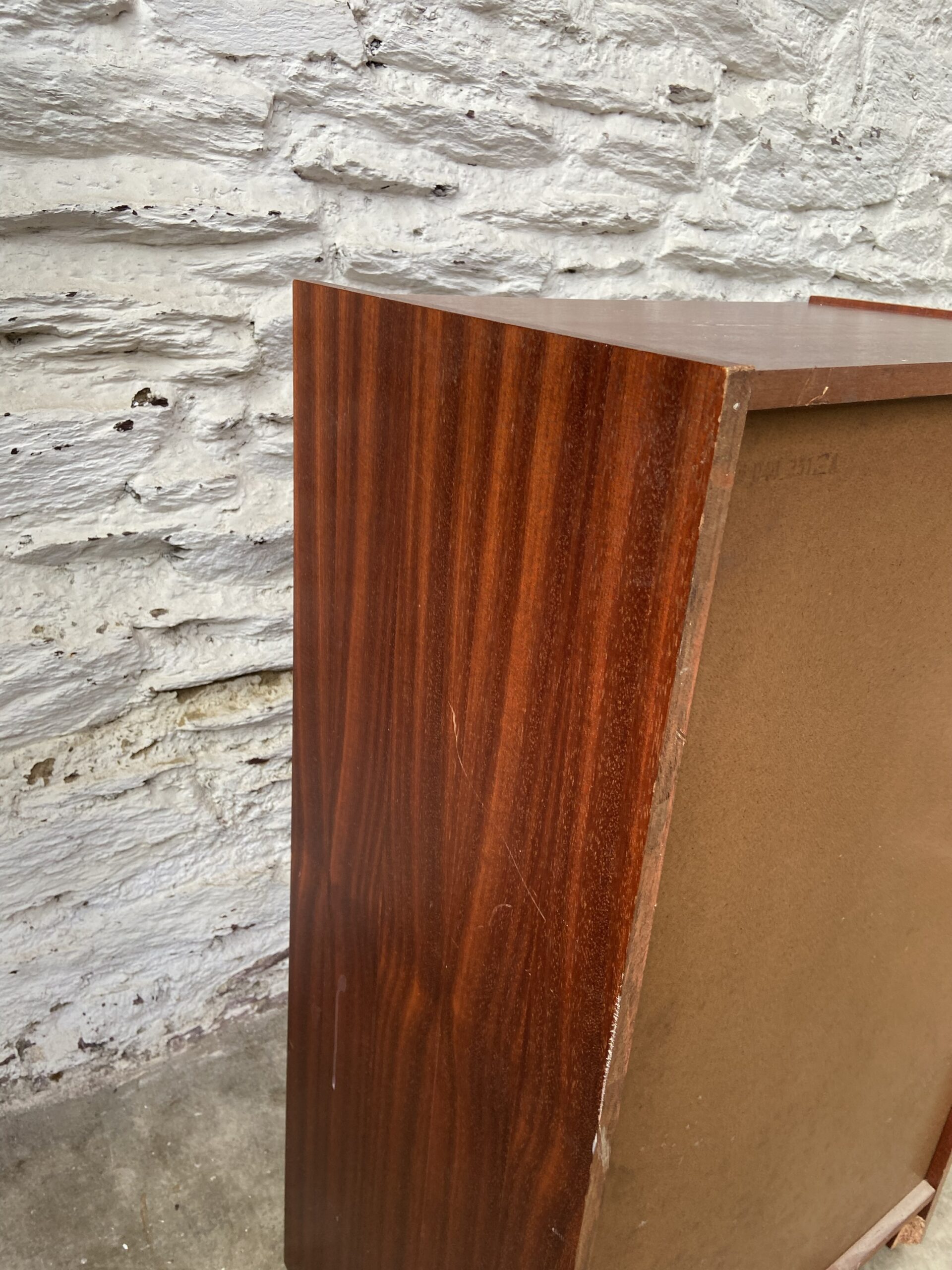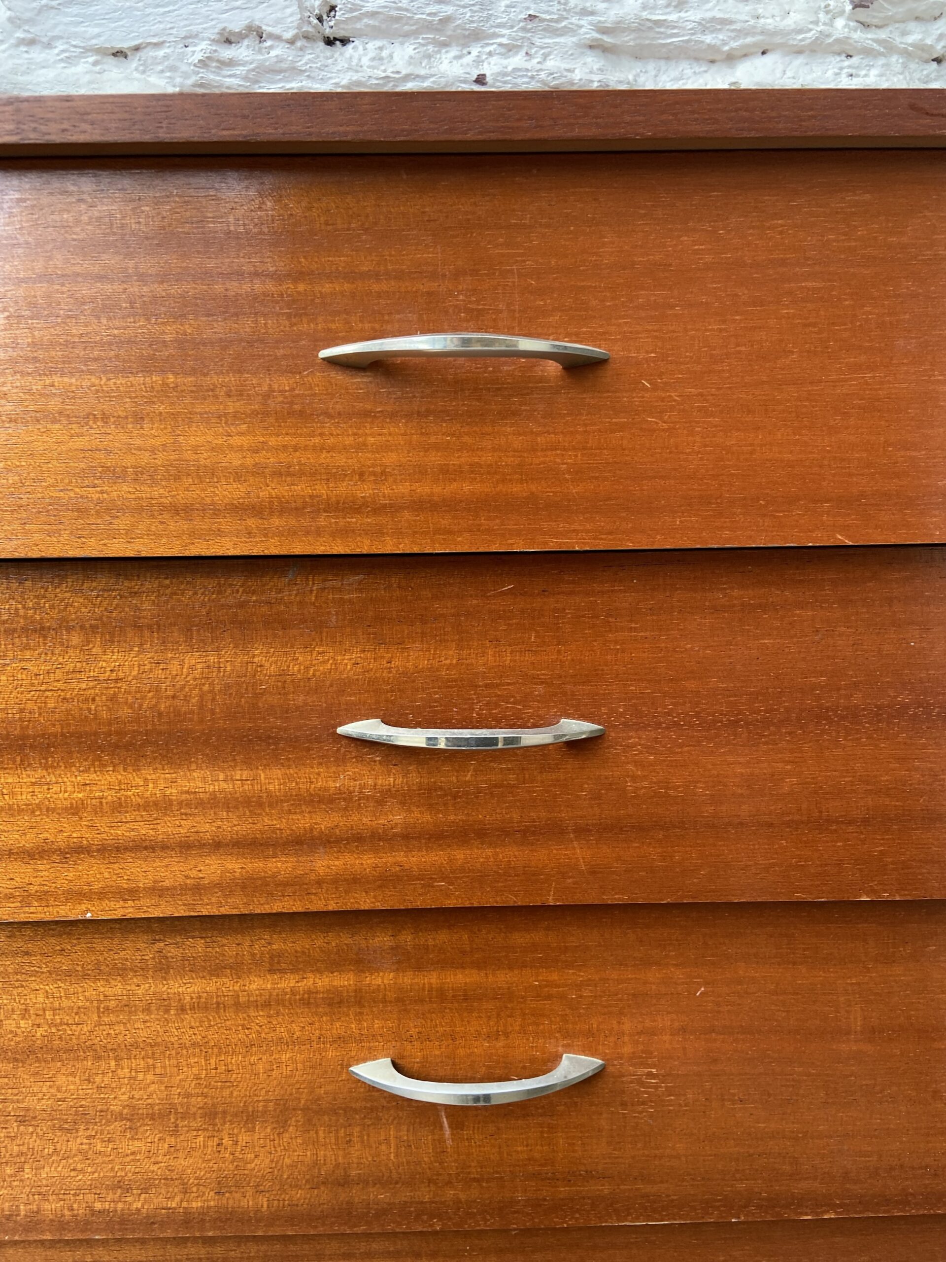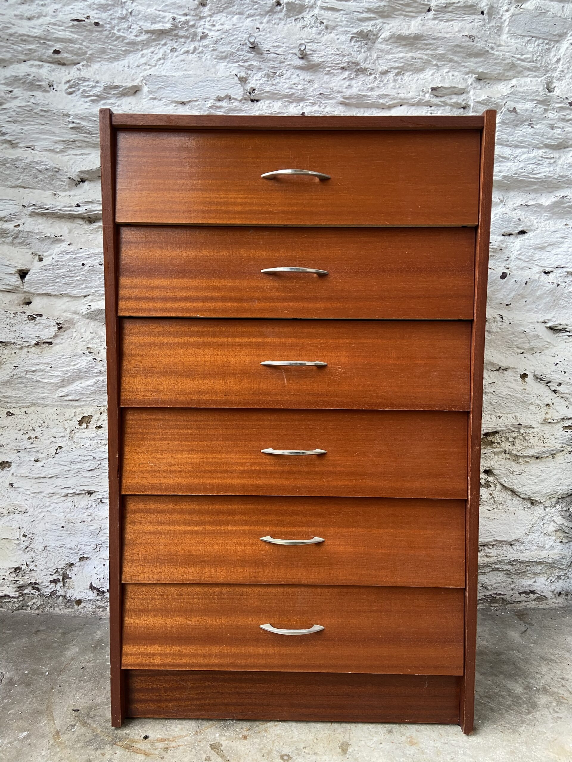 Chiffonnier en bois plaqué vintage. Années 60-70. 6 tiroirs avec petites poignées en laiton.