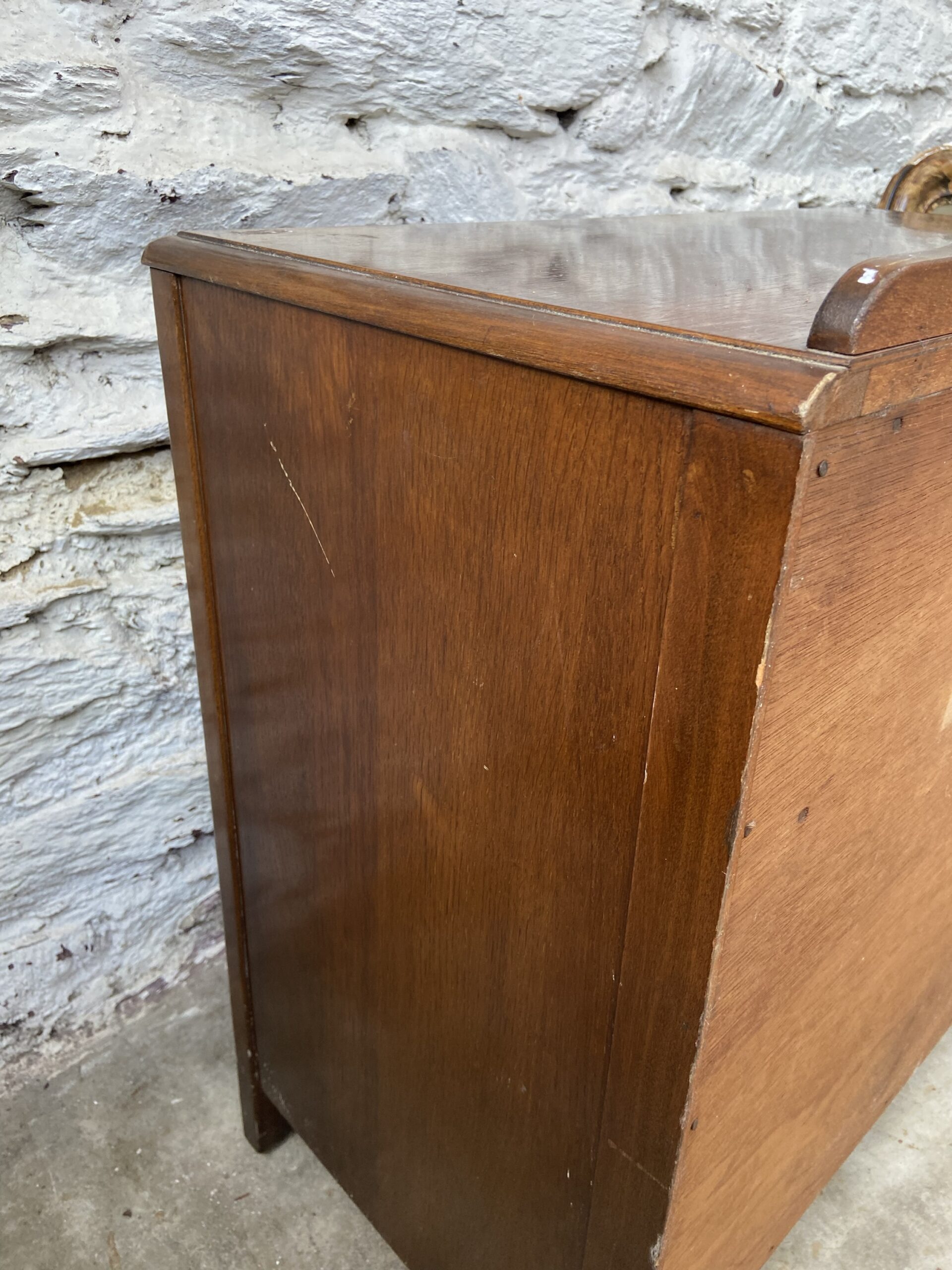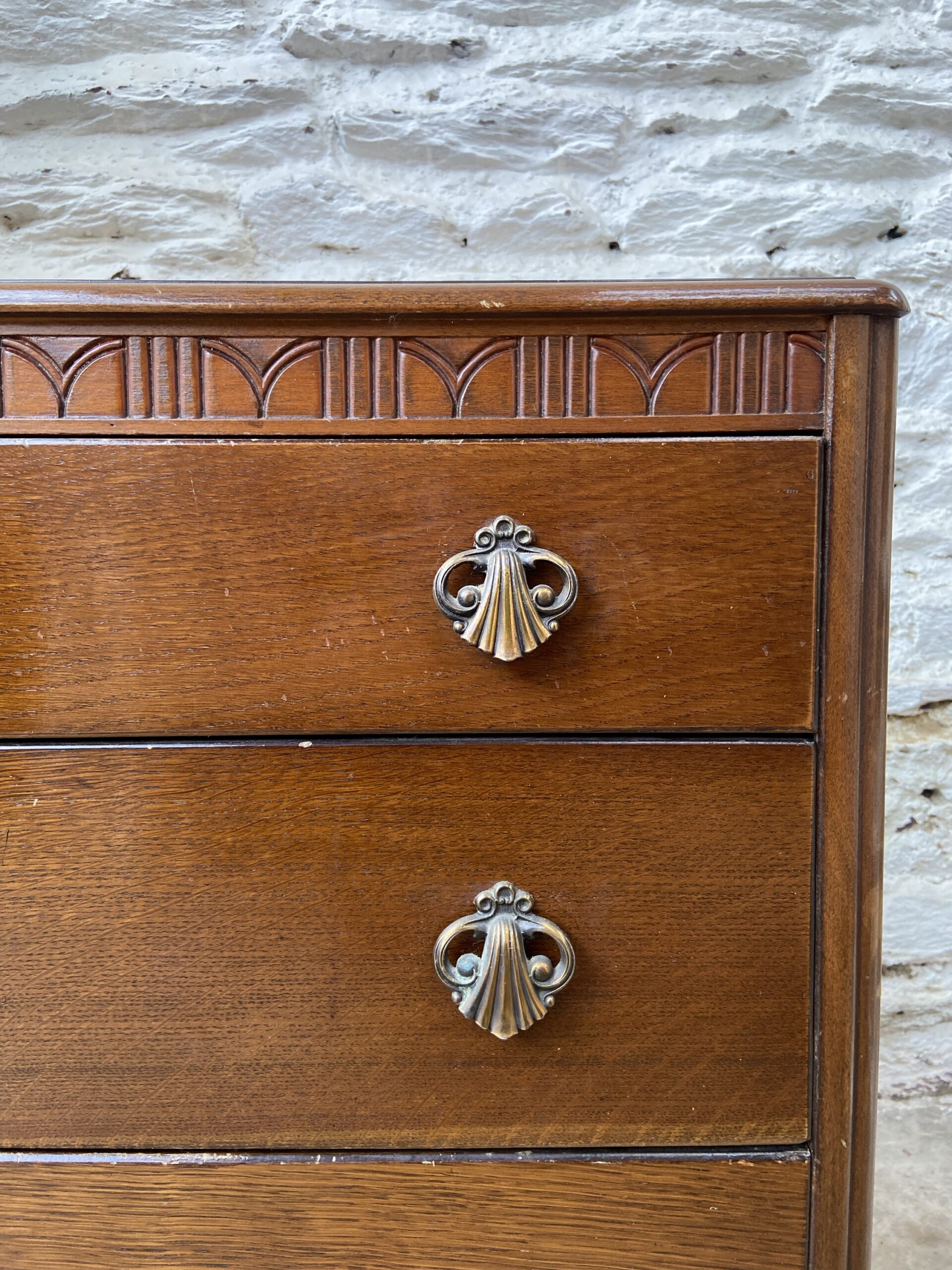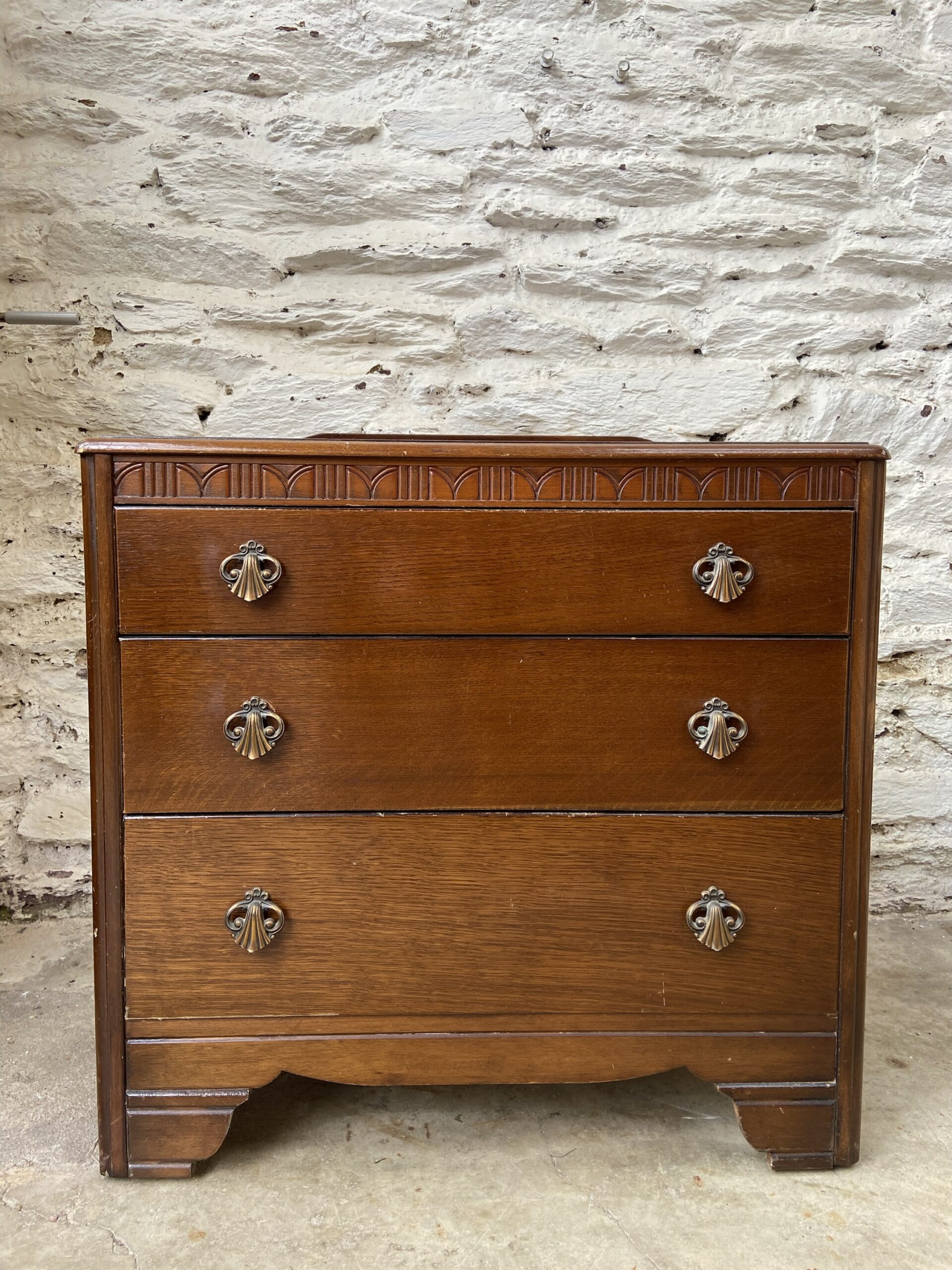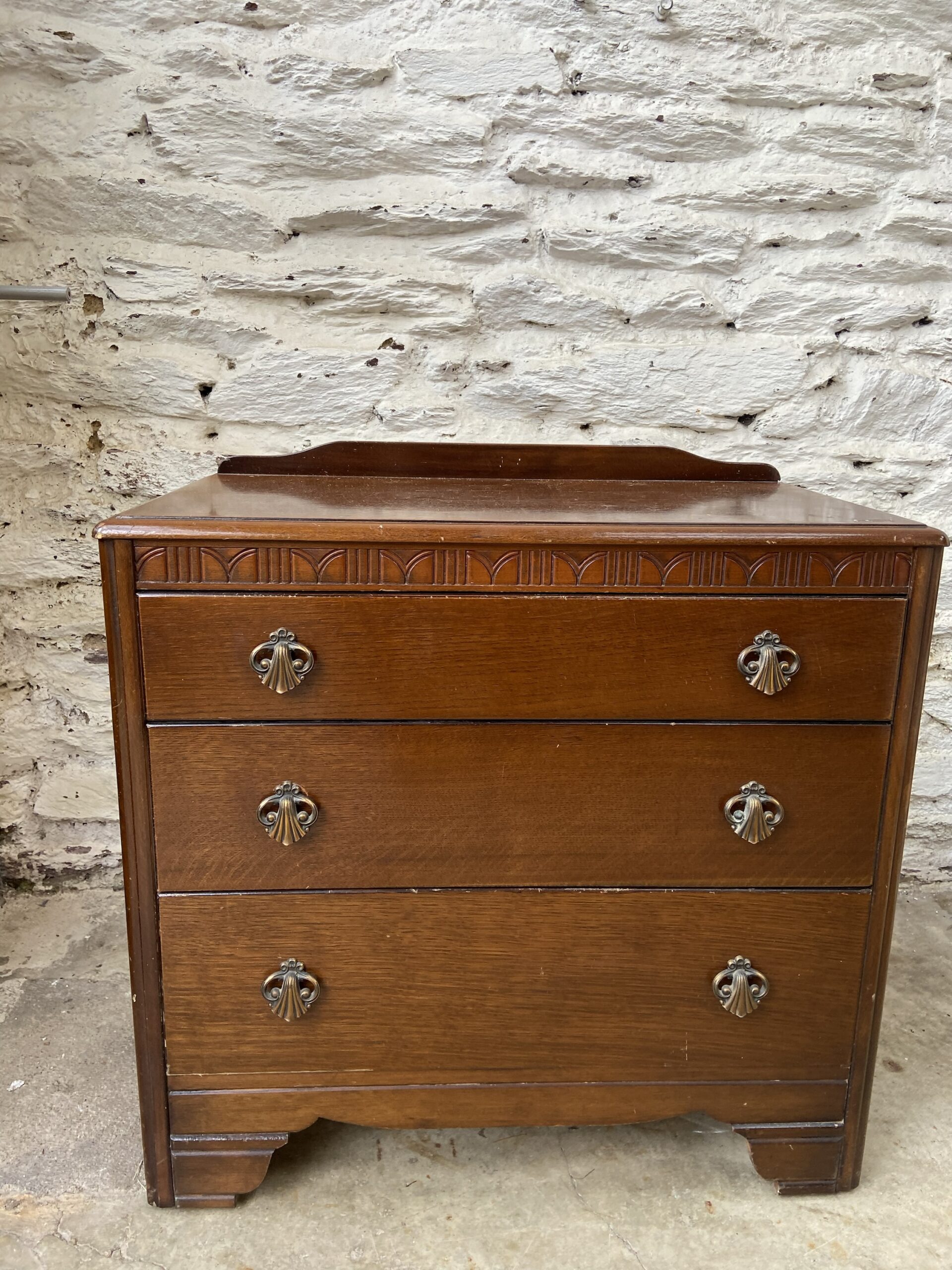 Jolie petite commode vintage des années 30 en bois foncé . 3 tiroirs .