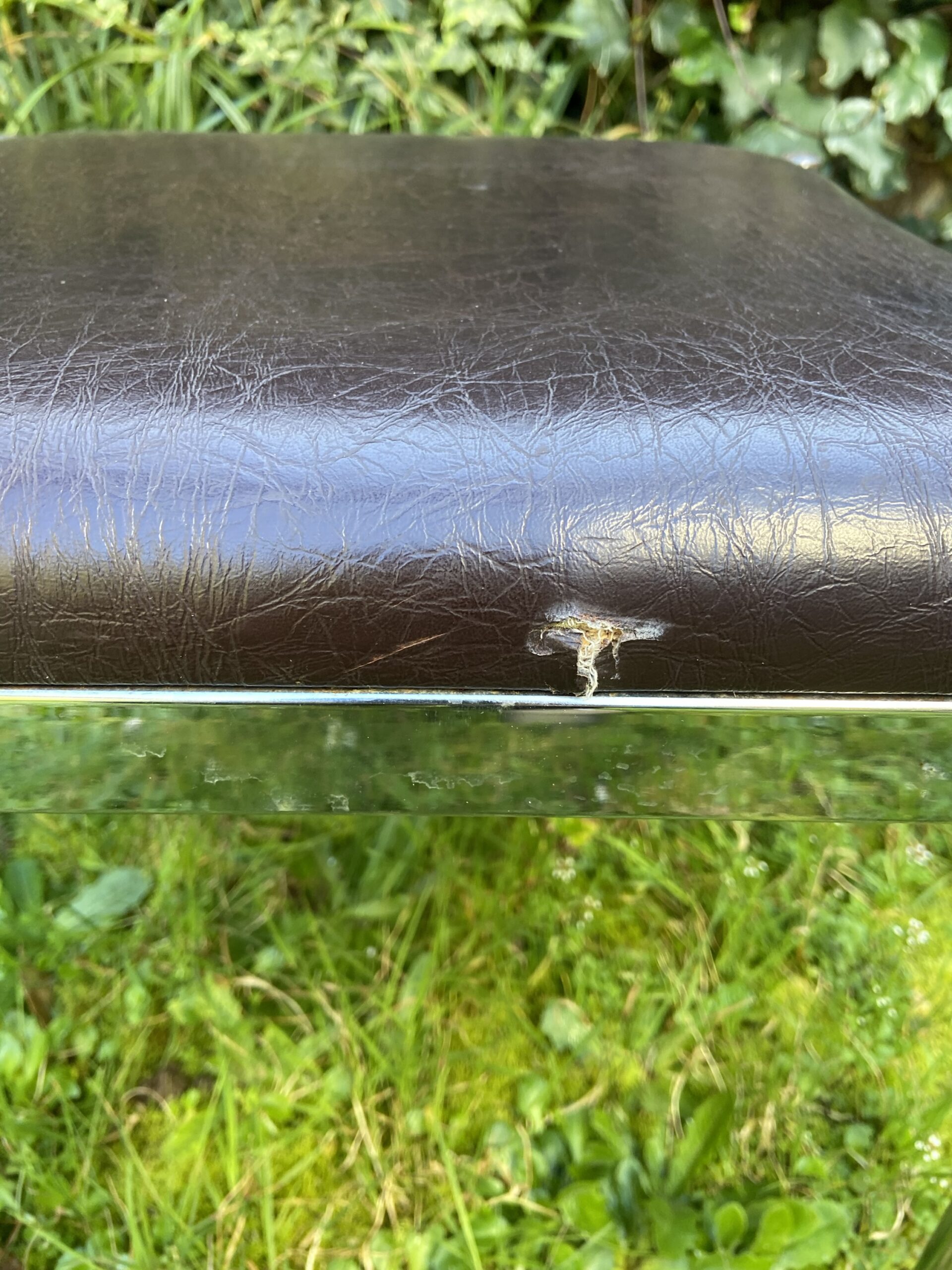 Bon état général . Un accroc dans le cuir d’une assise. Au dos donc ne se voit pas (voir photo)