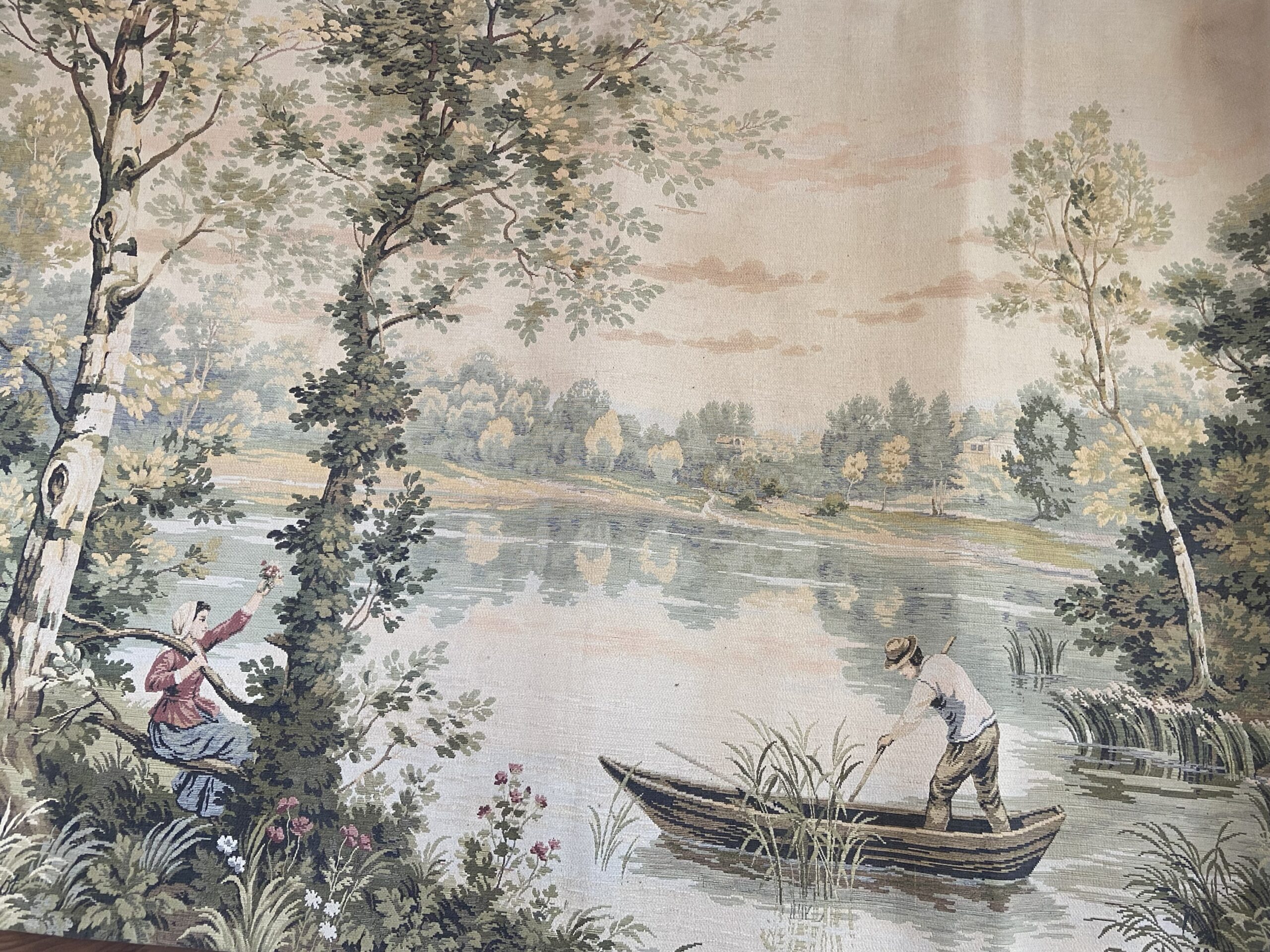 Tapisserie ancienne. Scène de genre d’après Corot.